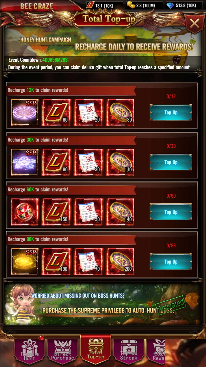 Accumulated Recharge: Reach the accumulated recharge amount to receive valuable and attractive rewards.