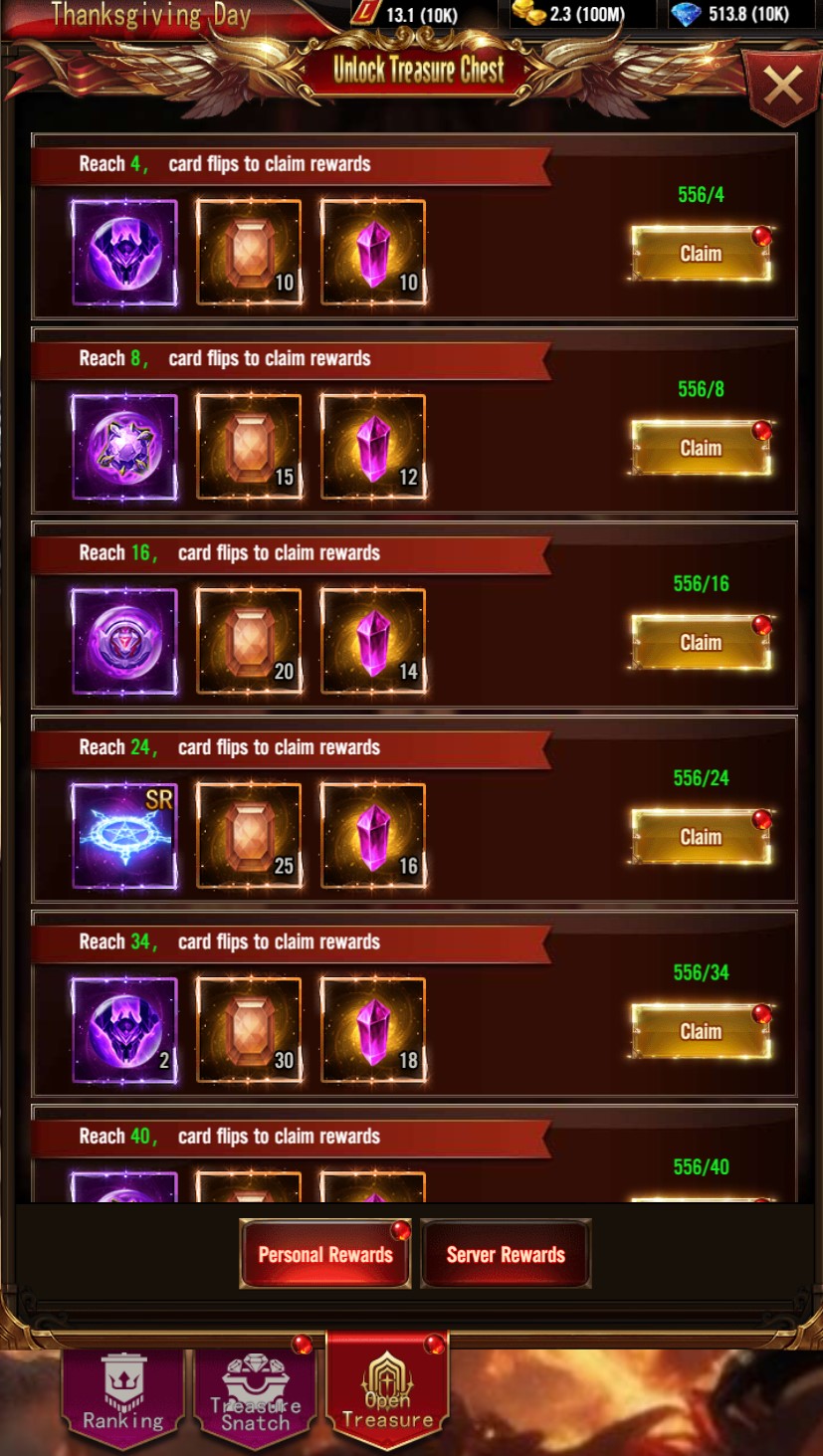 Accumulated Card Flips: Accumulate card flips to receive rewards for both individuals and the server, with many valuable and rare gifts, especially the Red Equipment Chest Fragments.