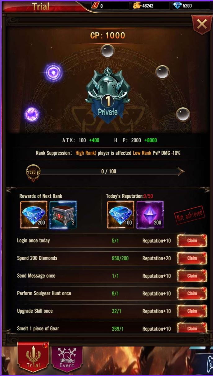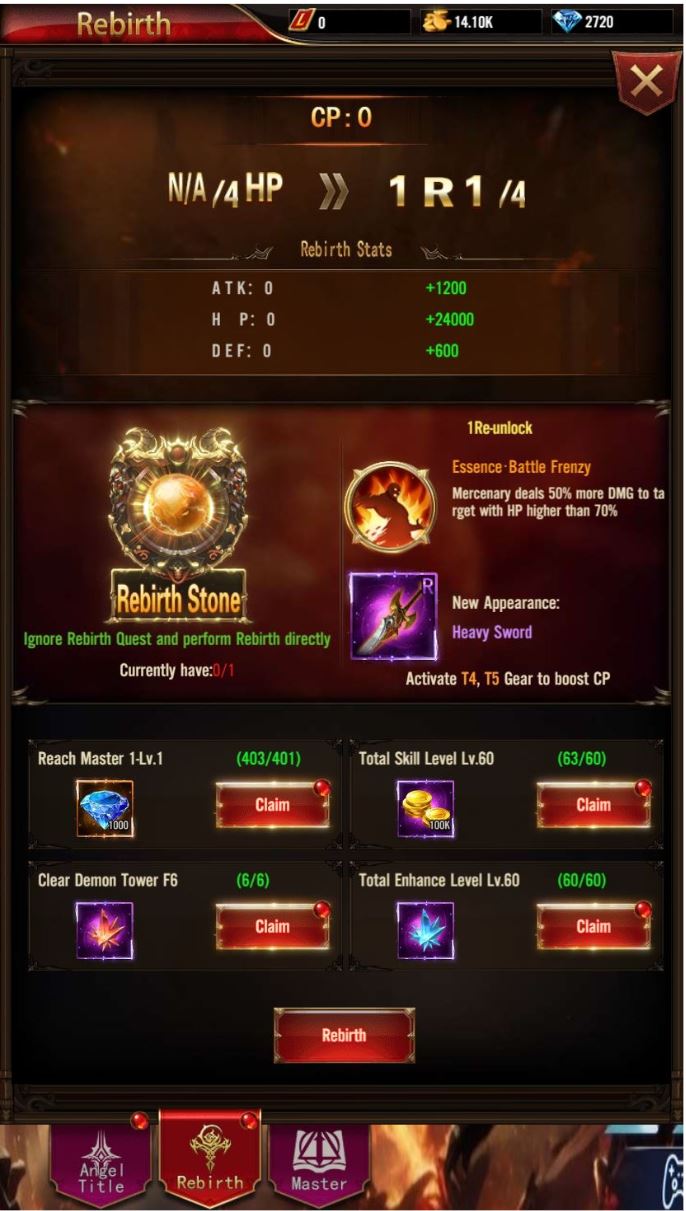 Rebirth levels are very important as each rebirth level unlocks passive attributes to enhance your strength and resistance.
