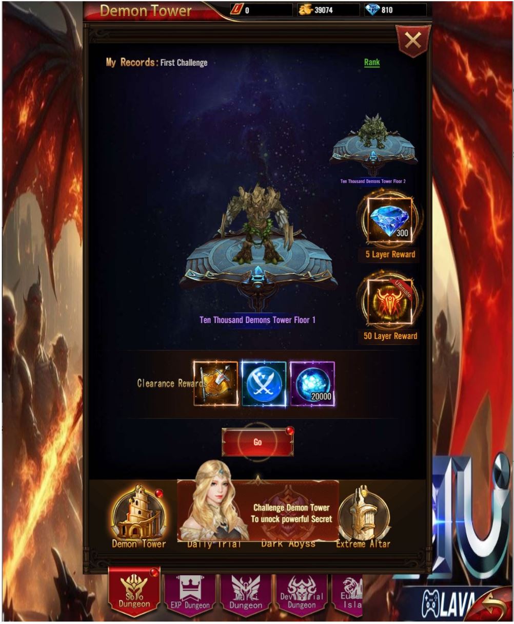 The first dungeon you will experience is the Demon Tower. Numerous divine points and treasure tickets are waiting for you.